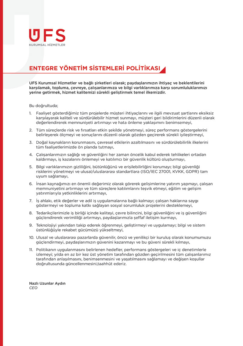 UFS ENTEGRE YÖNETİM SİSTEMLERİ POLİTİKASI
